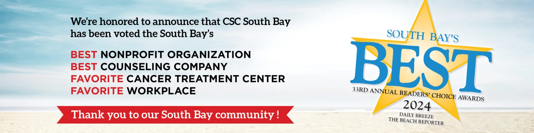 We’ve earned the Platinum Seal of Transparency Rating on Candid! This recognition indicates that CSC South Bay shares clear and important information with the public about our goals, strategies, services, finances, and progress indicators, highlighting how our services make a direct impact on the community. View our full Candid profile here.