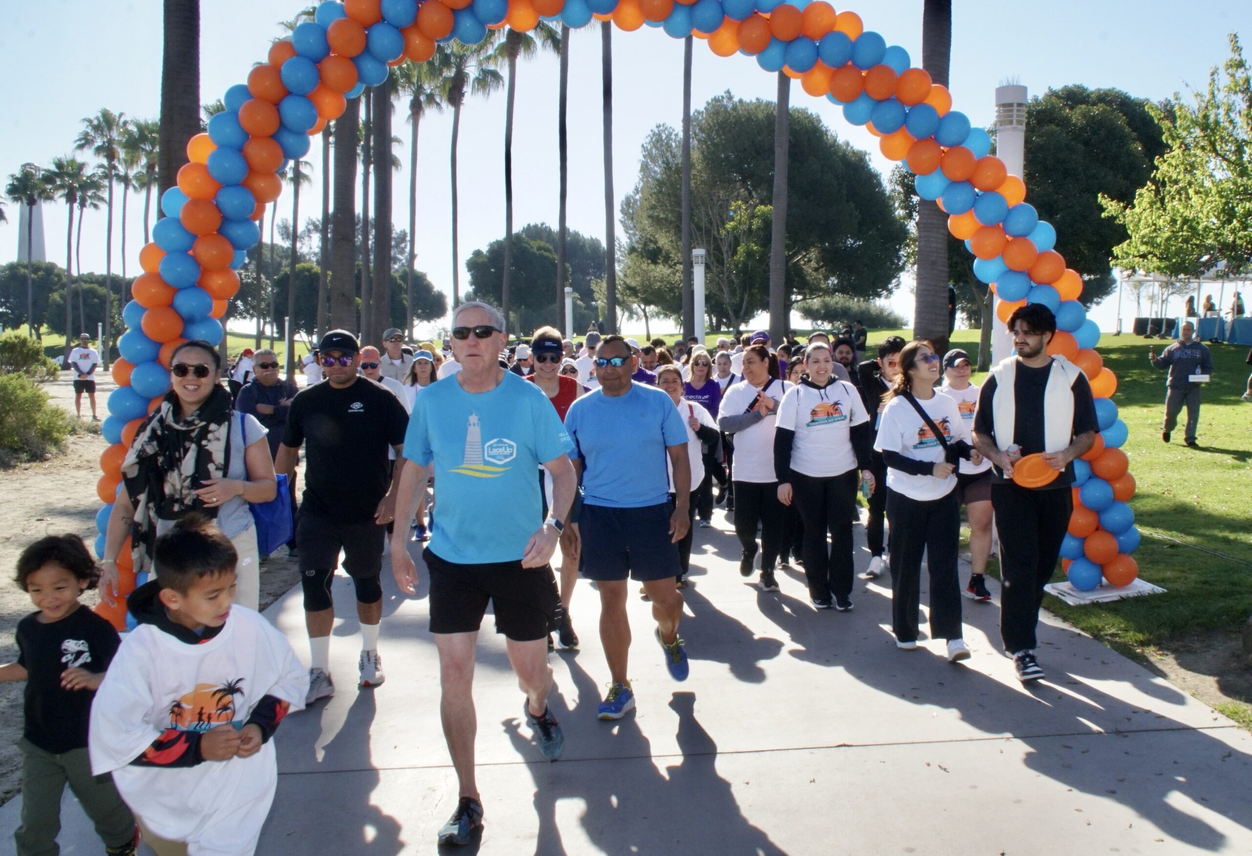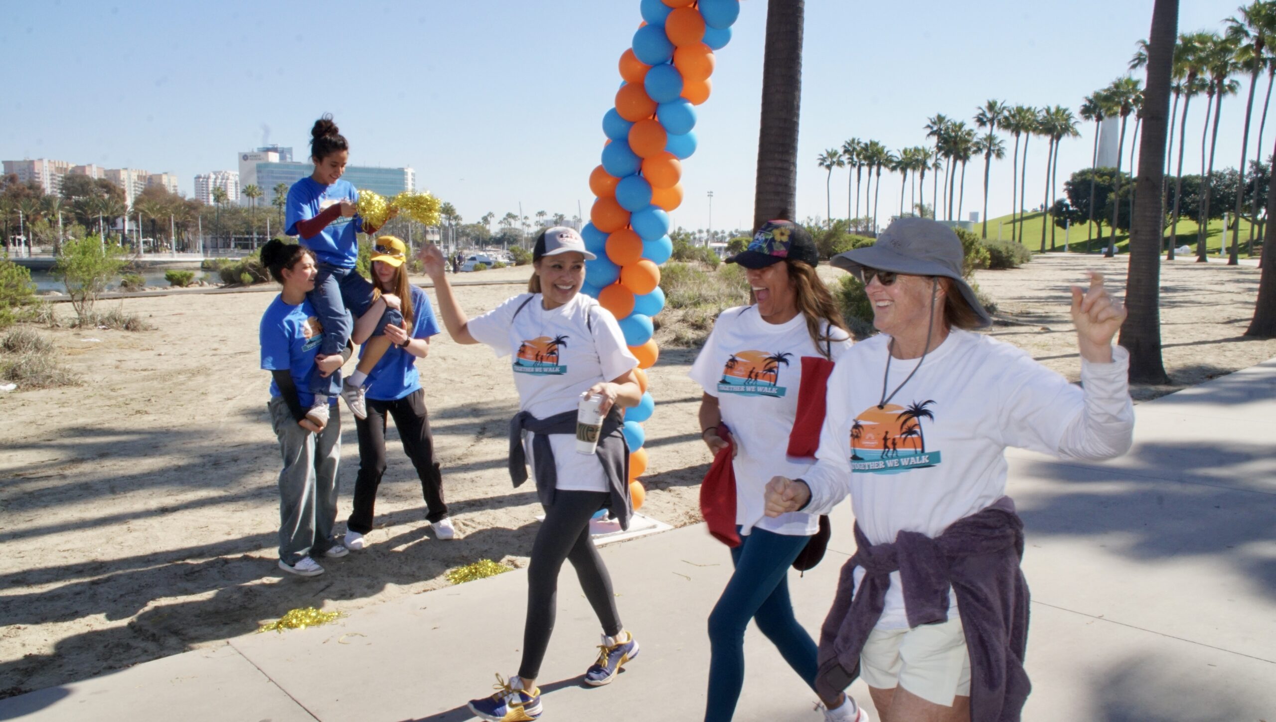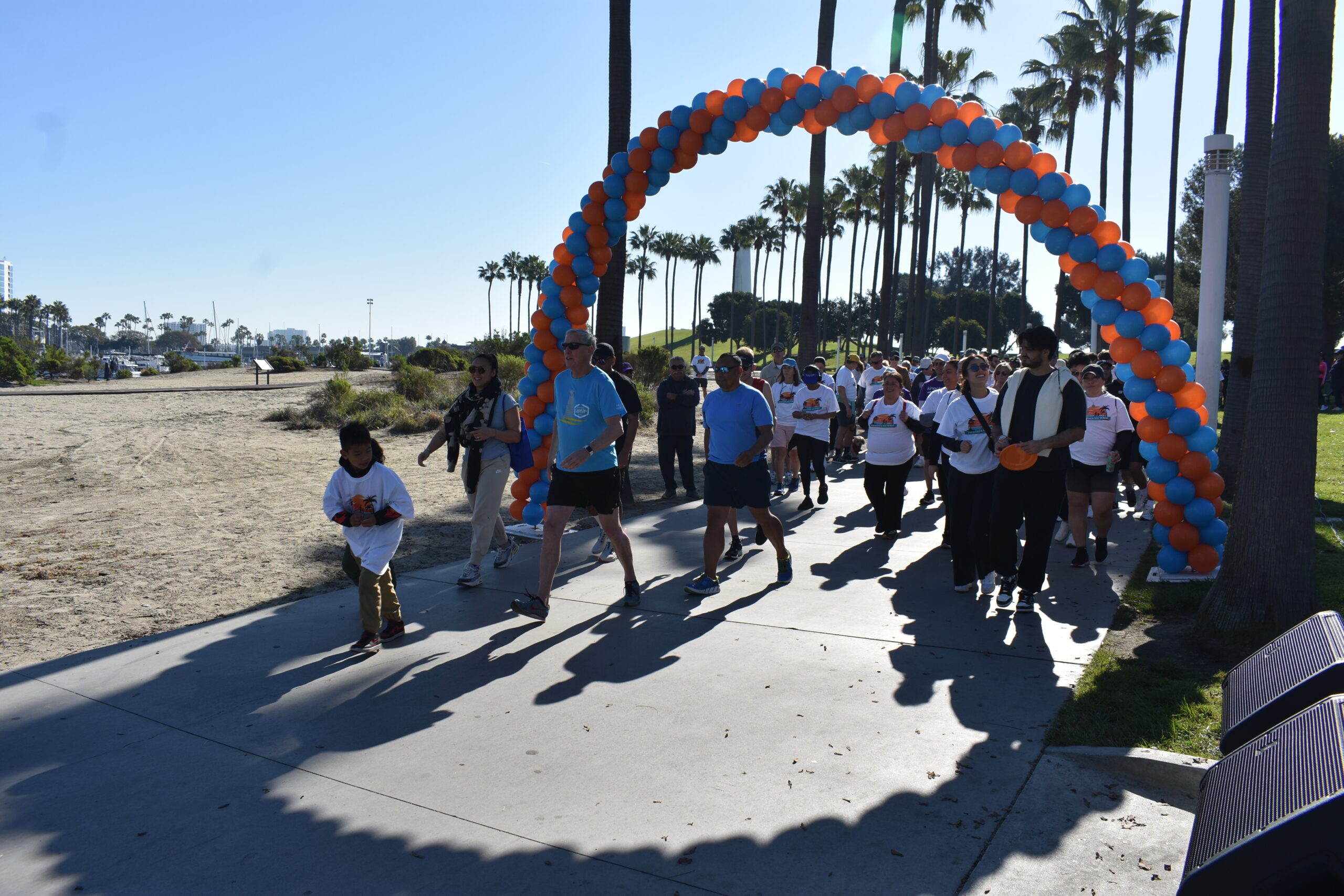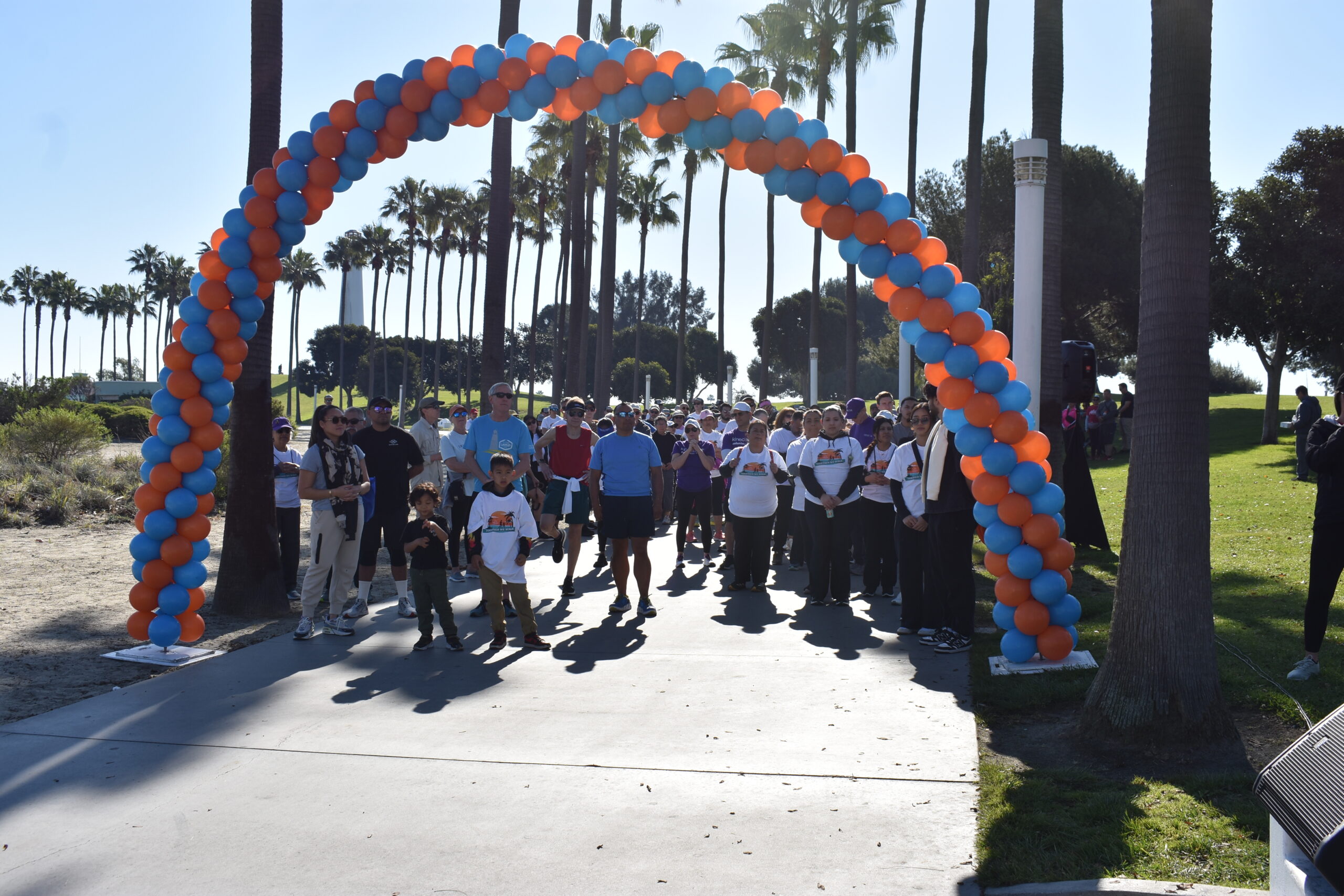 Together We Walk starts at Shoreline Aquatic Park near the parking lot. The 5K walk weaves its way through Long Beach passing the Aquarium, Sea Shell Park, Gladstone’s Restaurant, Shoreline Village, Parkers’ Lighthouse, Queen Mary, and the harbor. The walk ends back at the Aquatic Park where we started.