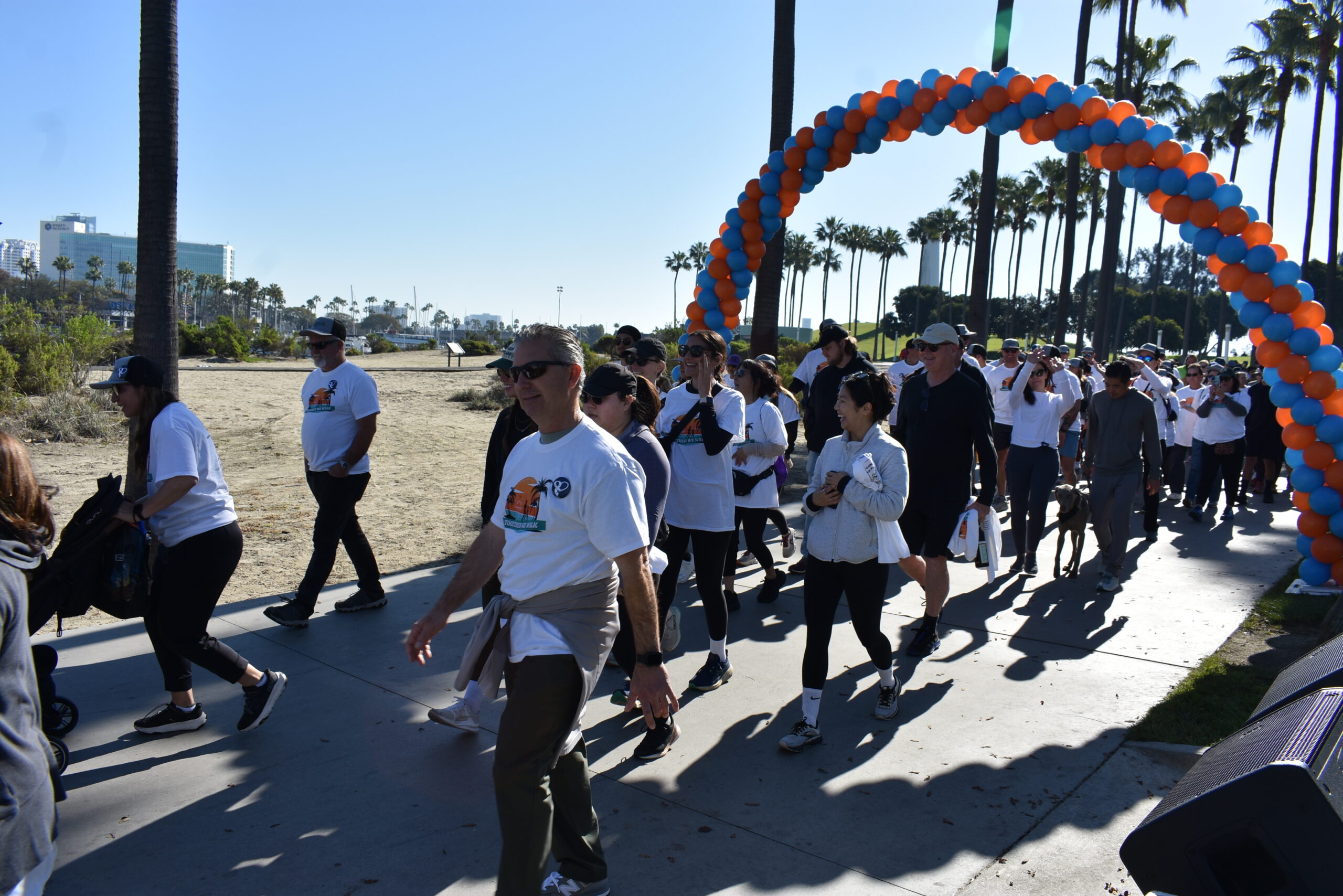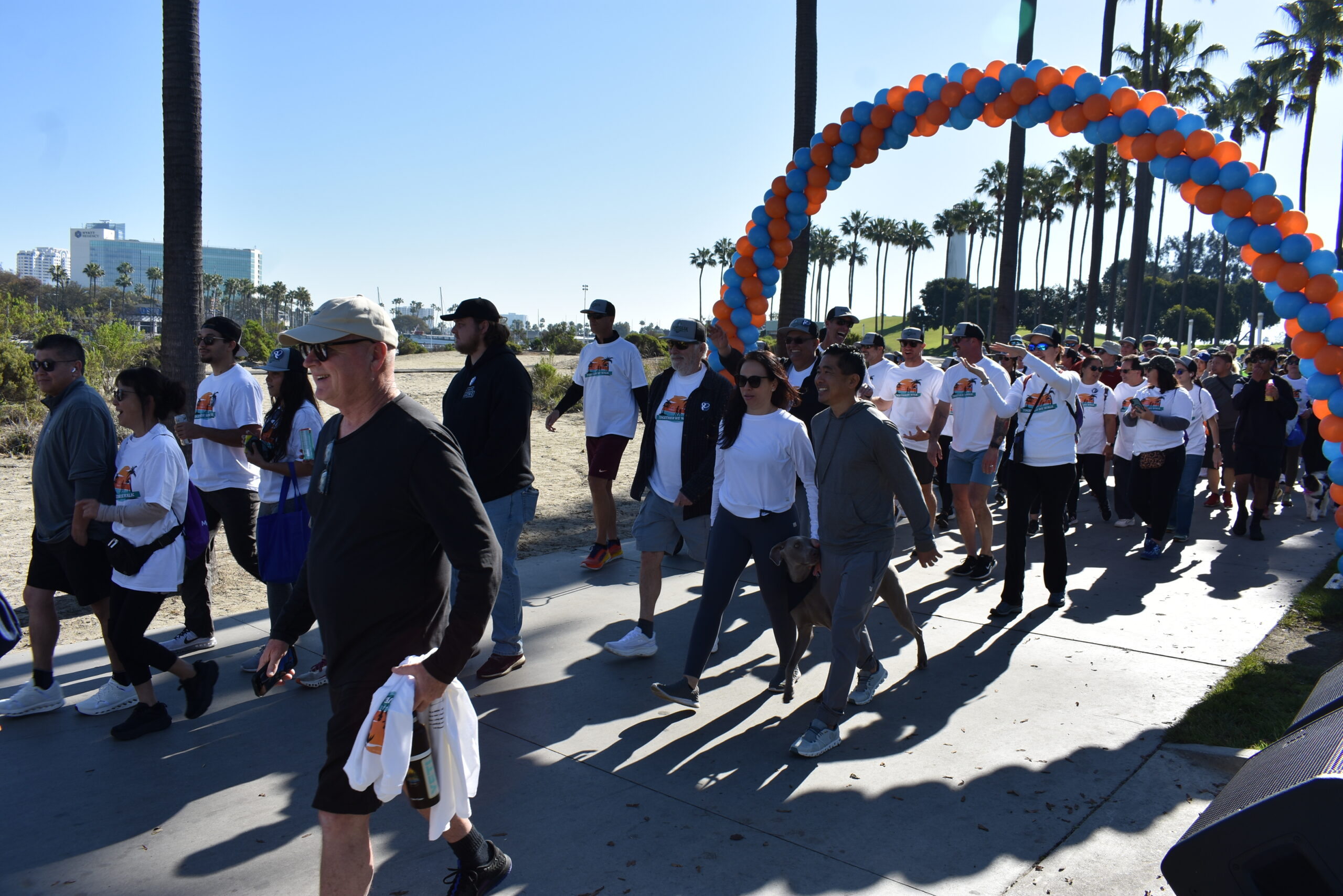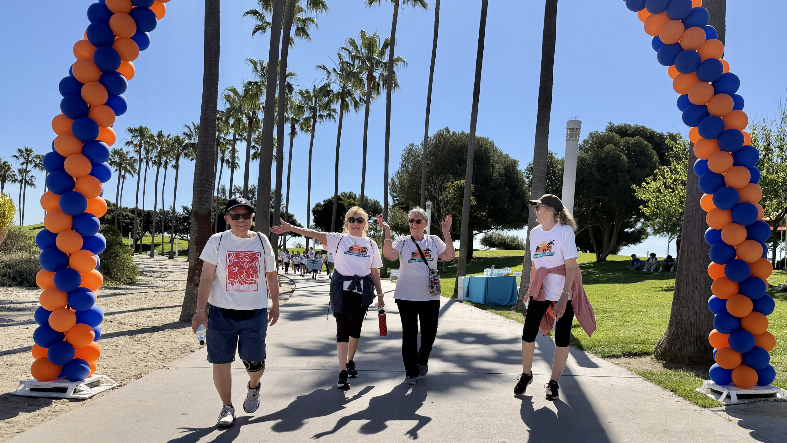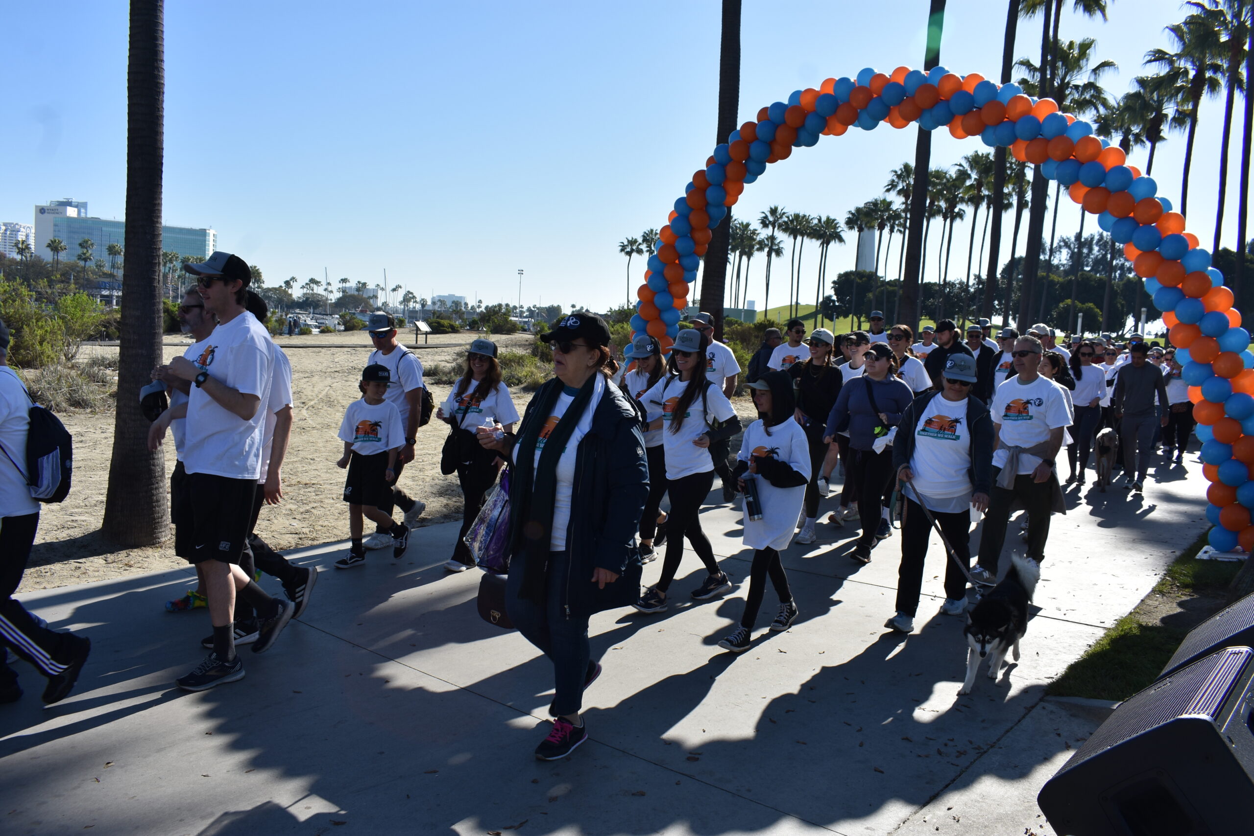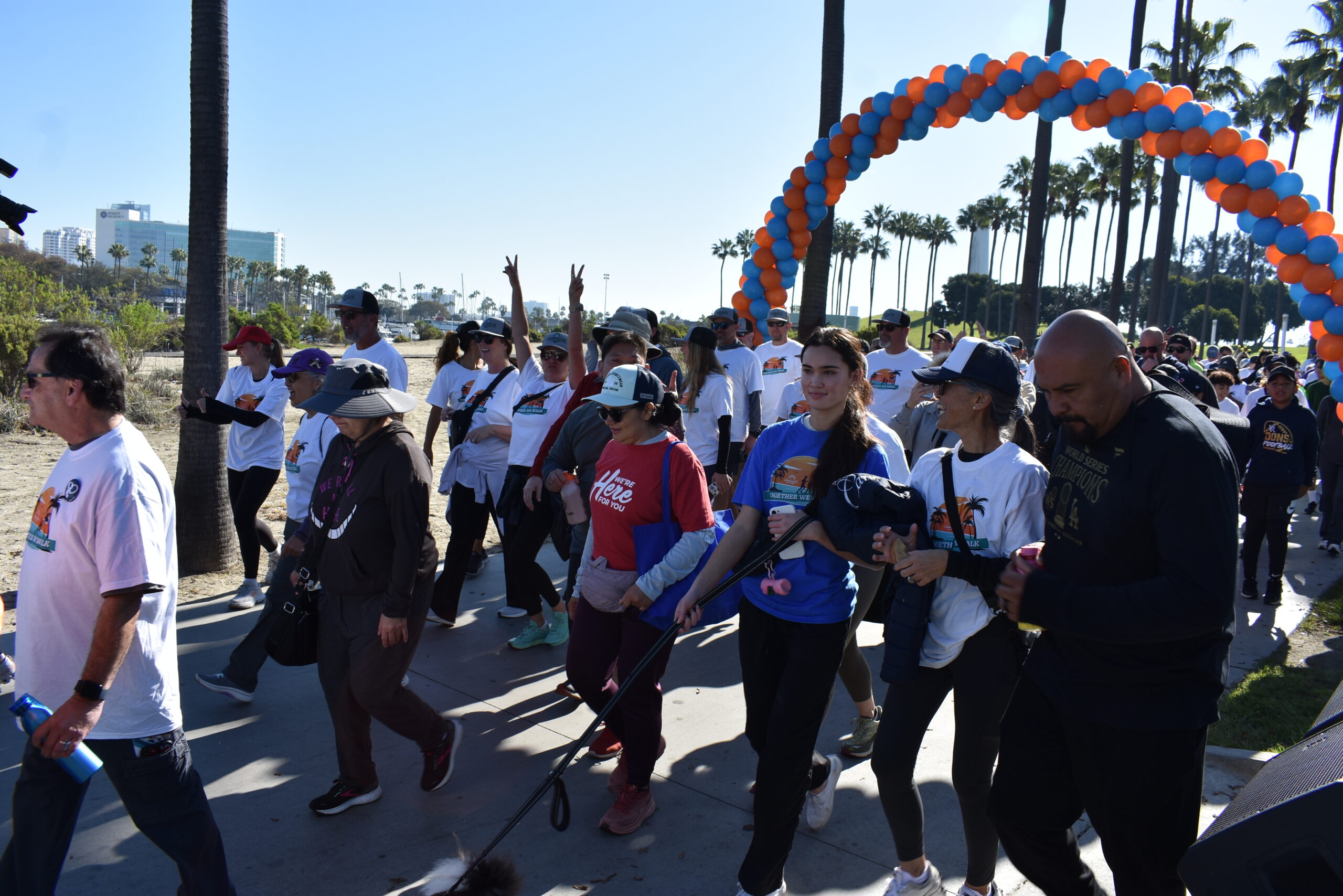 Together We Walk starts at Shoreline Aquatic Park near the parking lot. The 5K walk weaves its way through Long Beach passing the Aquarium, Sea Shell Park, Gladstone’s Restaurant, Shoreline Village, Parkers’ Lighthouse, Queen Mary, and the harbor. The walk ends back at the Aquatic Park where we started.