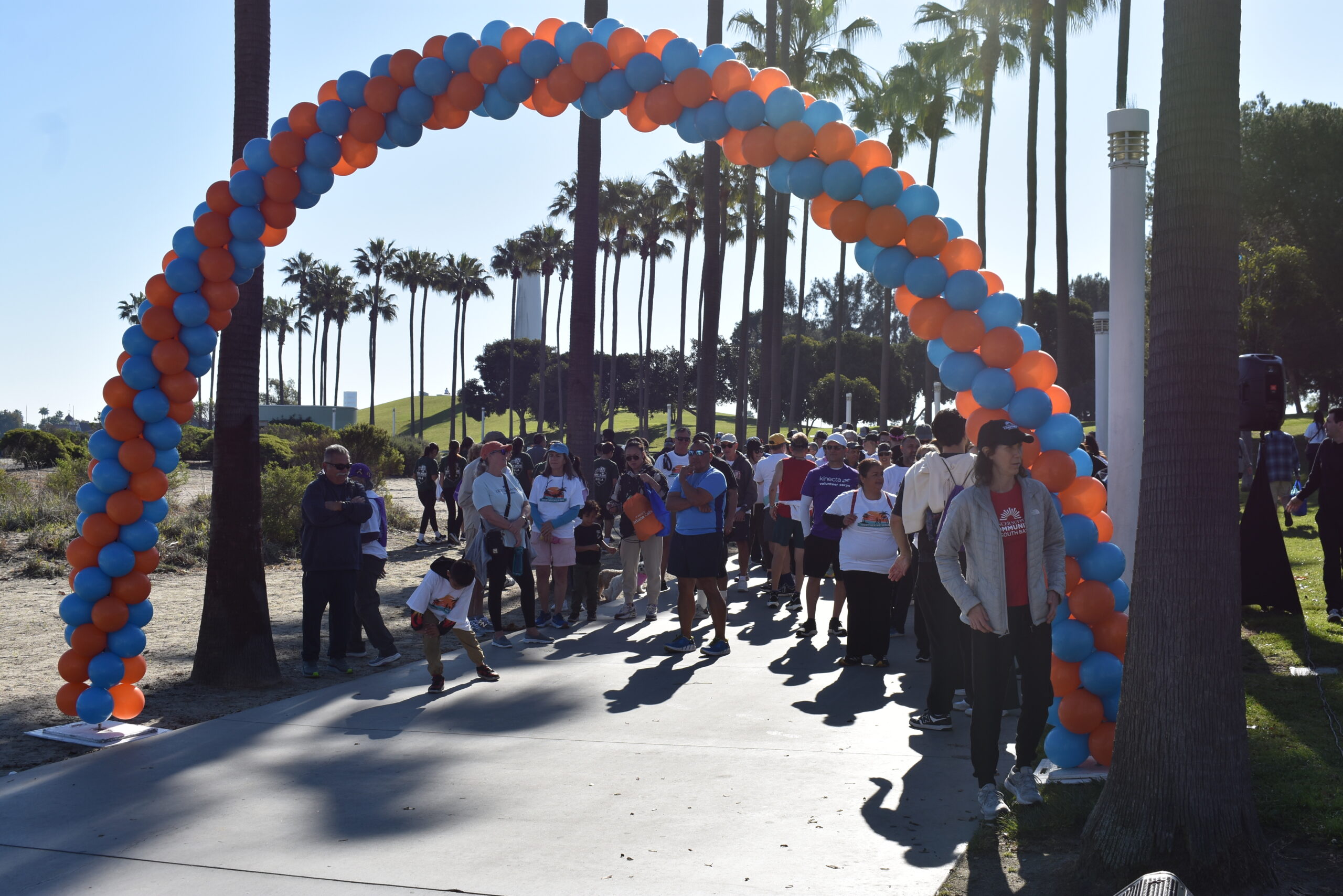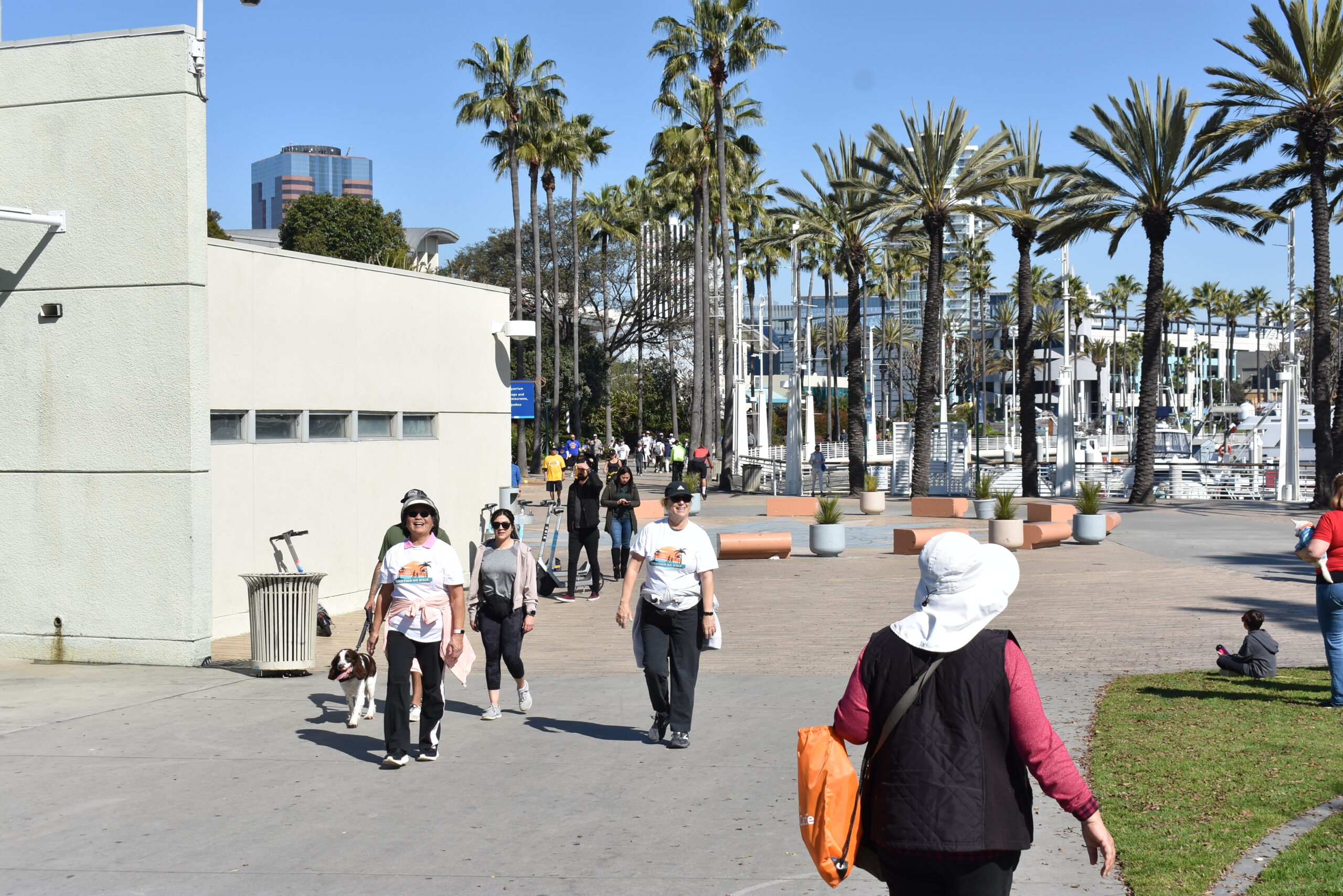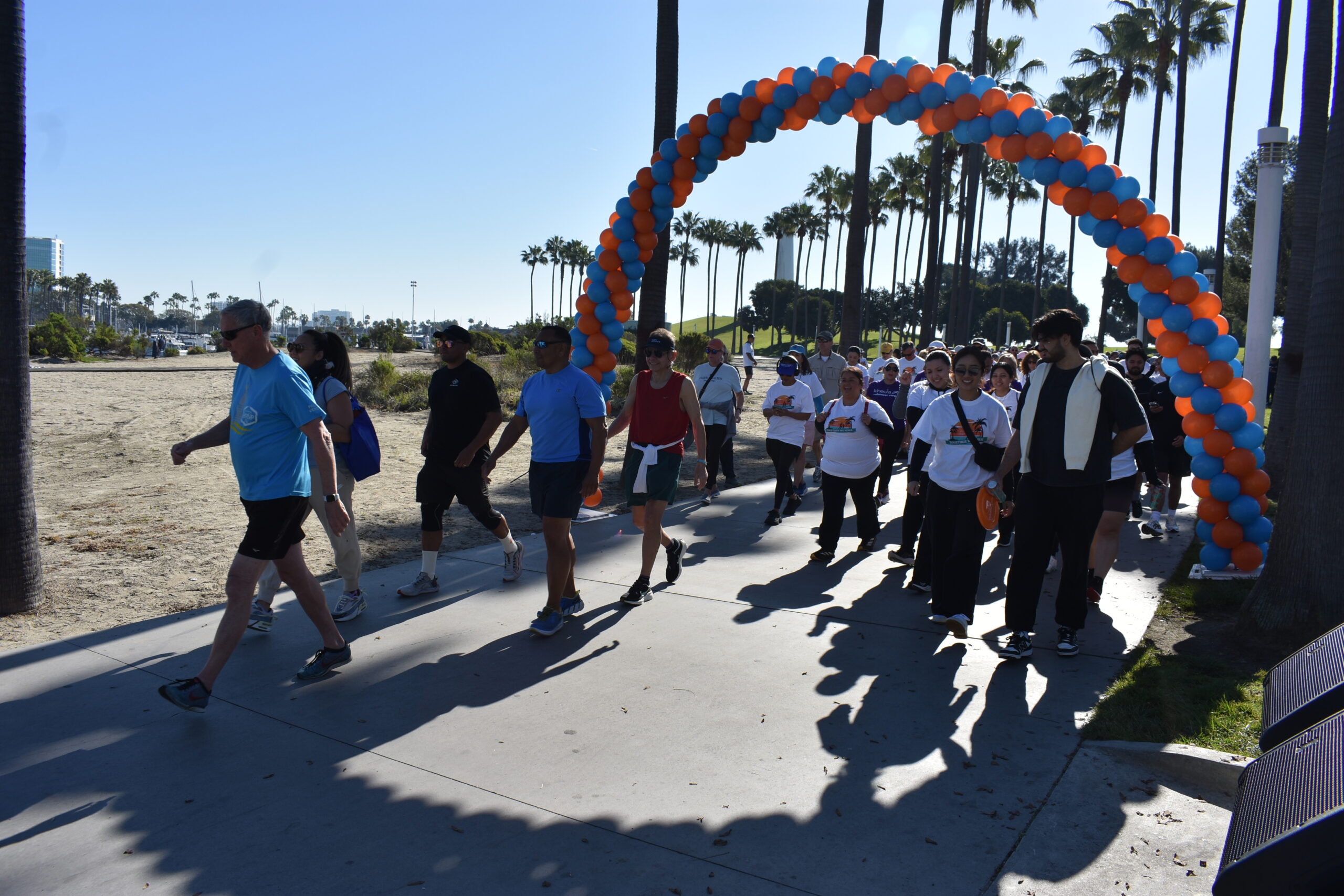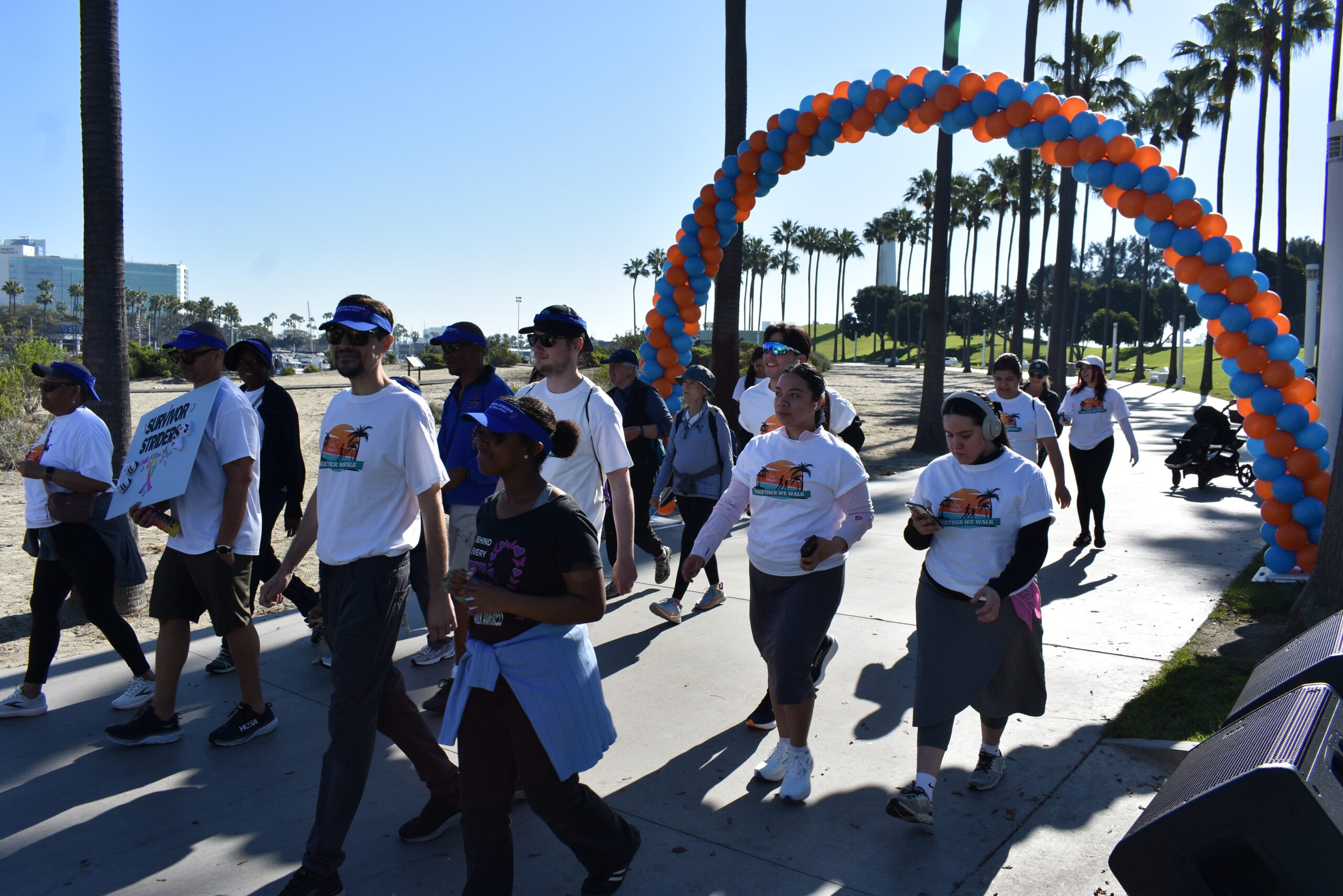 Together We Walk starts at Shoreline Aquatic Park near the parking lot. The 5K walk weaves its way through Long Beach passing the Aquarium, Sea Shell Park, Gladstone’s Restaurant, Shoreline Village, Parkers’ Lighthouse, Queen Mary, and the harbor. The walk ends back at the Aquatic Park where we started.