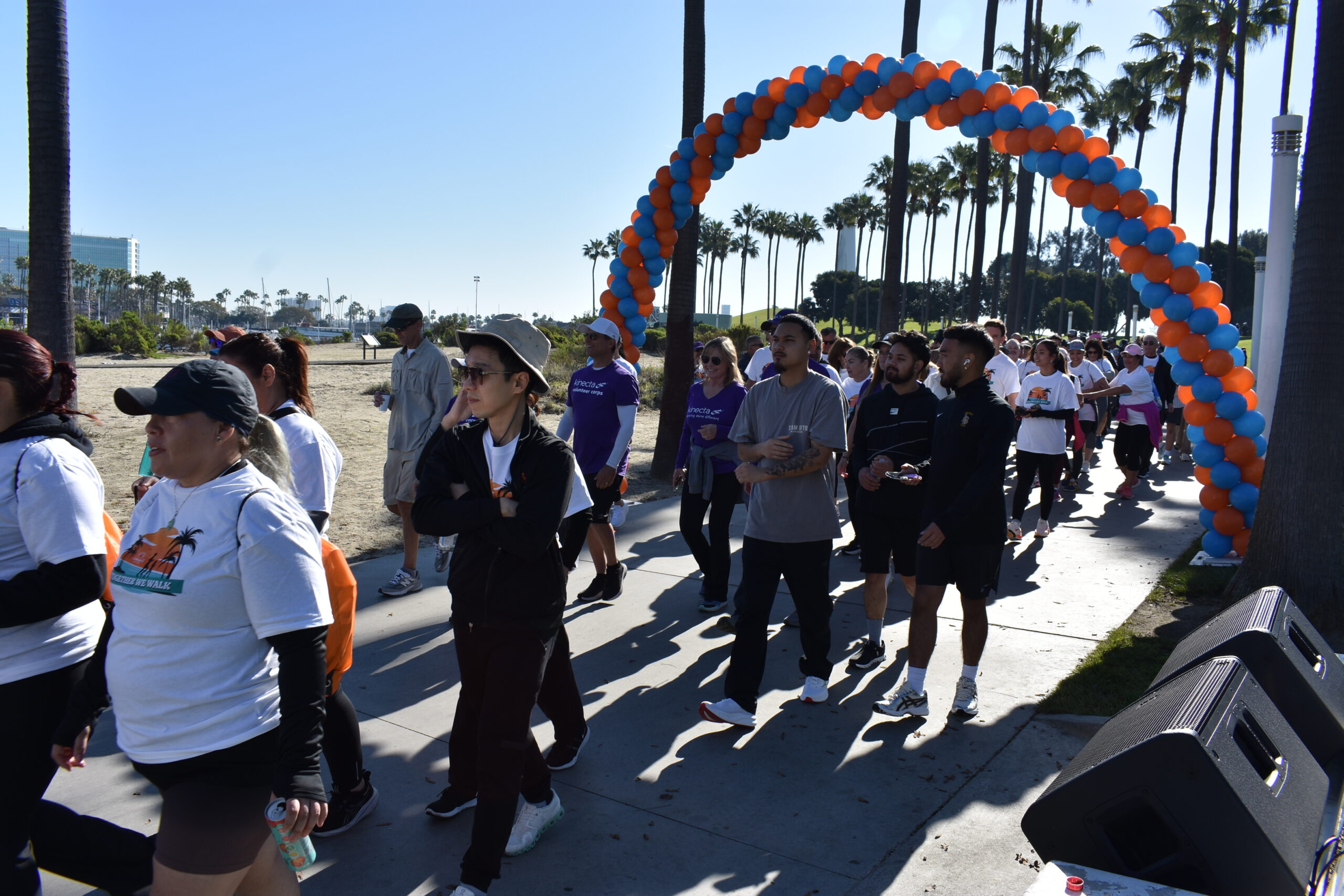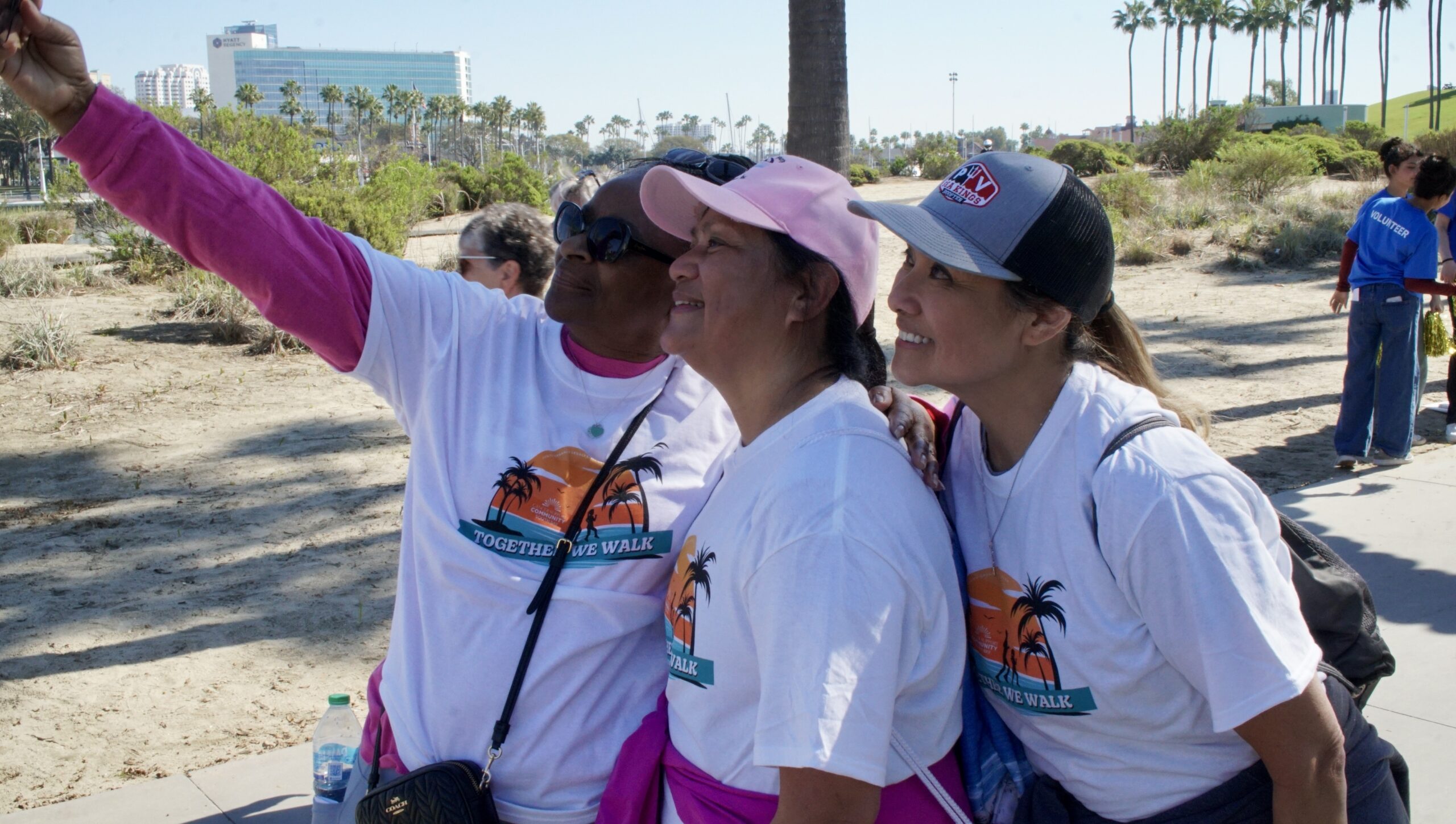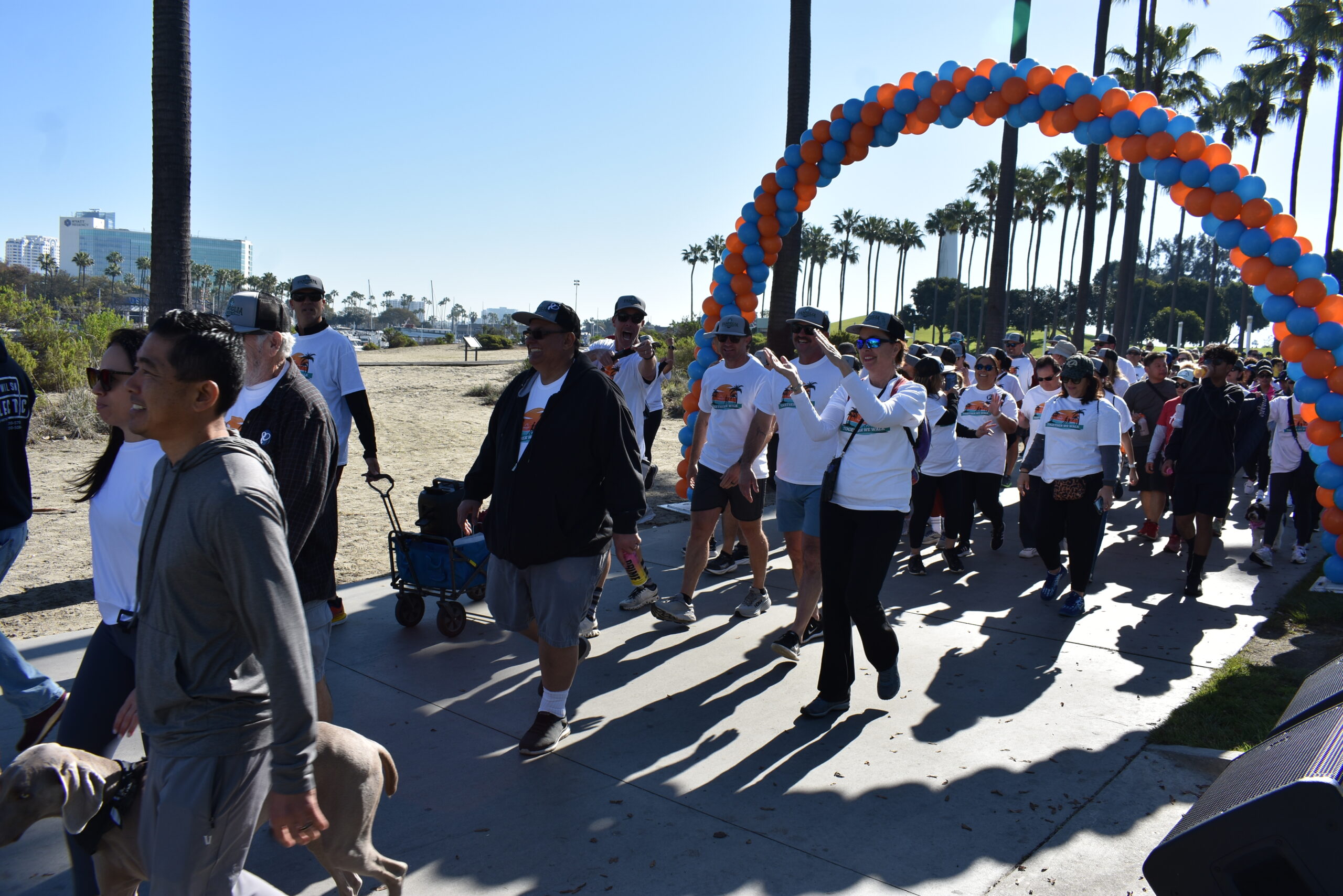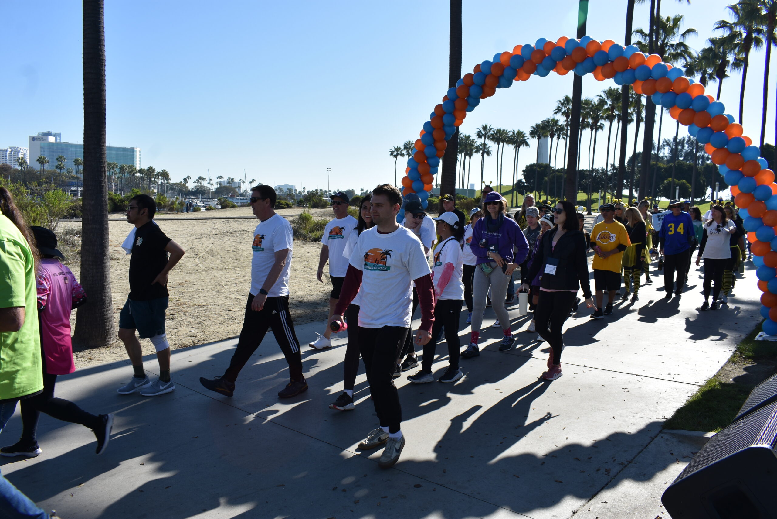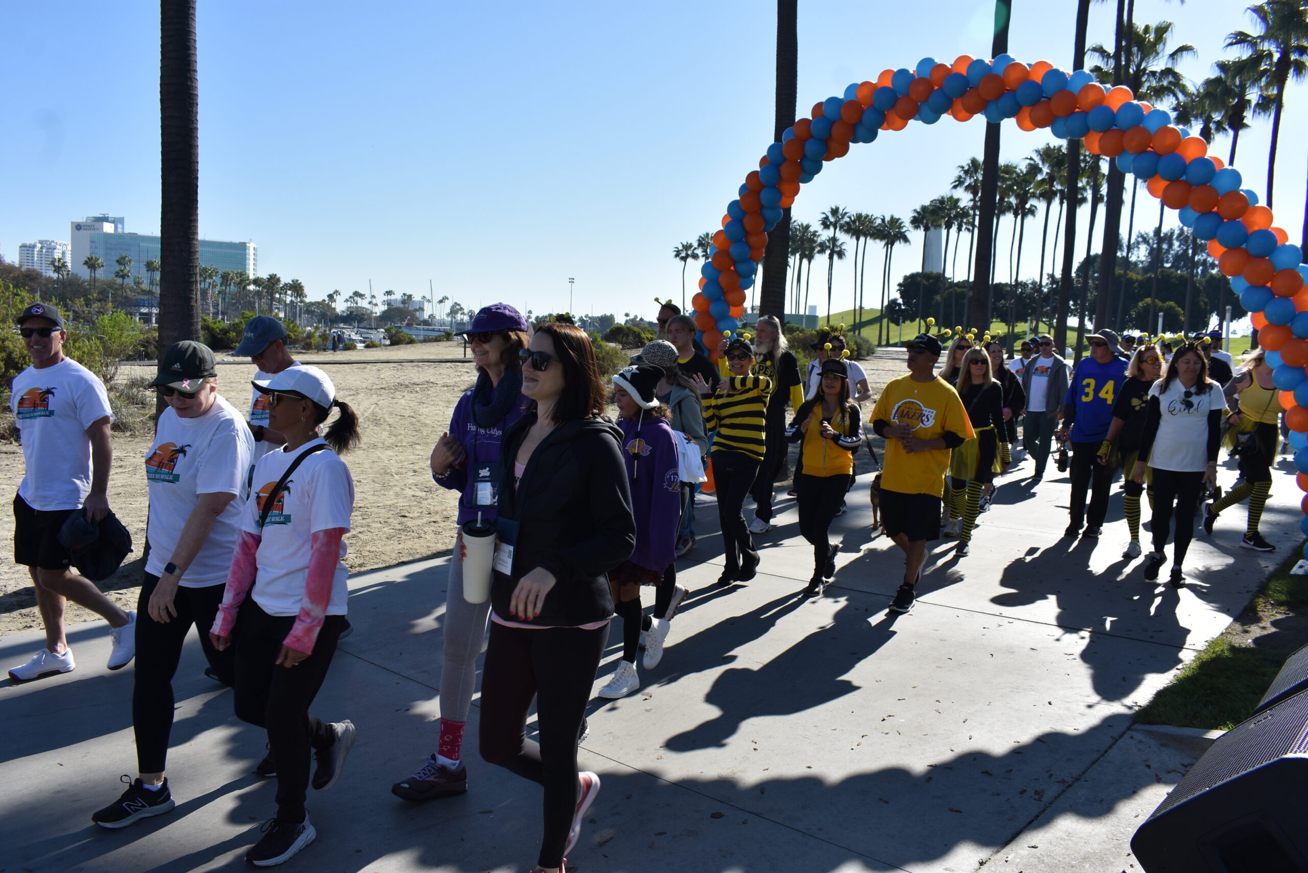 Together We Walk starts at Shoreline Aquatic Park near the parking lot. The 5K walk weaves its way through Long Beach passing the Aquarium, Sea Shell Park, Gladstone’s Restaurant, Shoreline Village, Parkers’ Lighthouse, Queen Mary, and the harbor. The walk ends back at the Aquatic Park where we started.