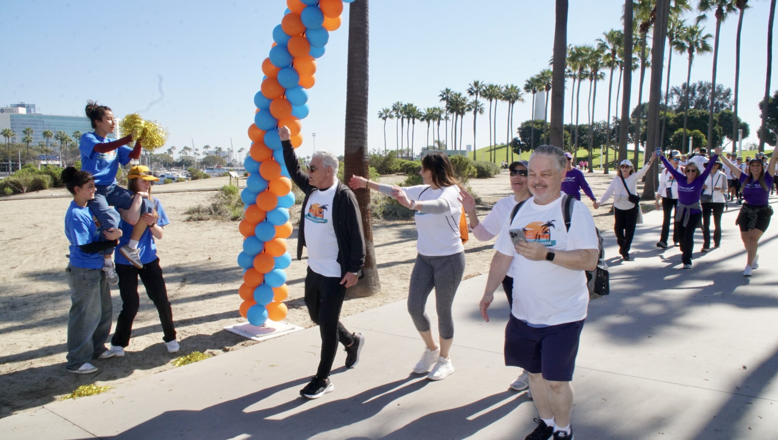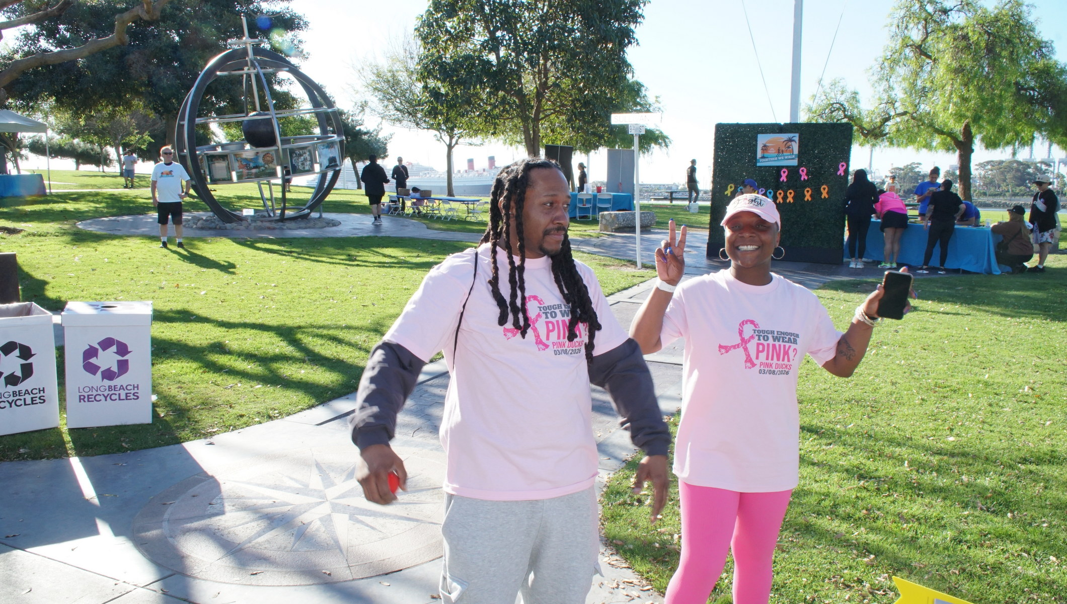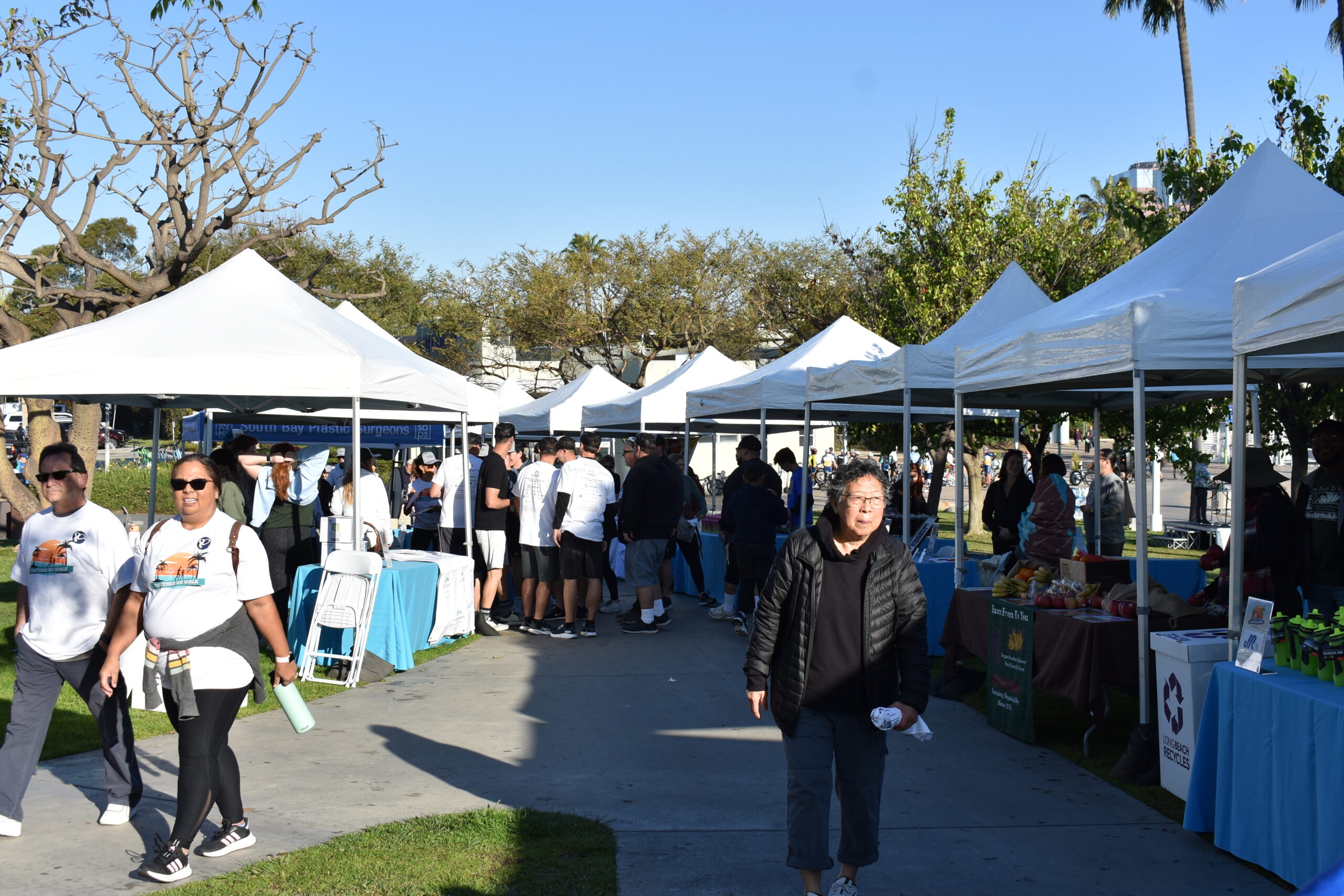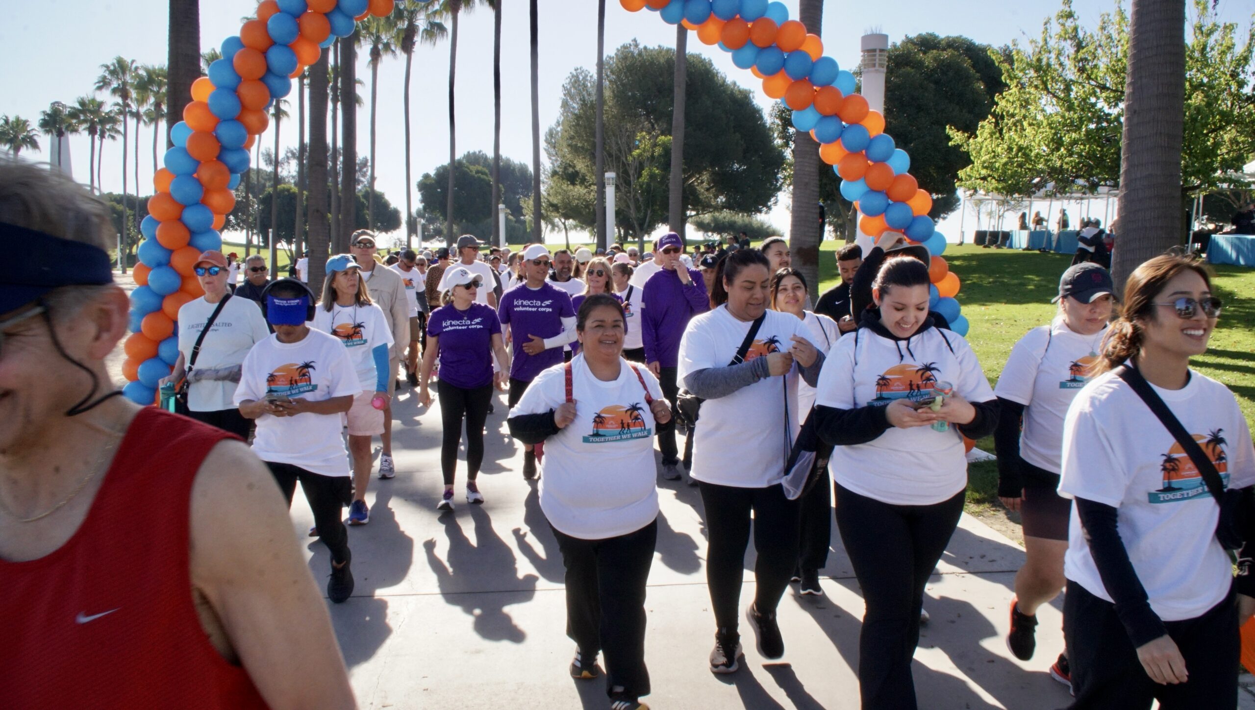 Together We Walk starts at Shoreline Aquatic Park near the parking lot. The 5K walk weaves its way through Long Beach passing the Aquarium, Sea Shell Park, Gladstone’s Restaurant, Shoreline Village, Parkers’ Lighthouse, Queen Mary, and the harbor. The walk ends back at the Aquatic Park where we started.