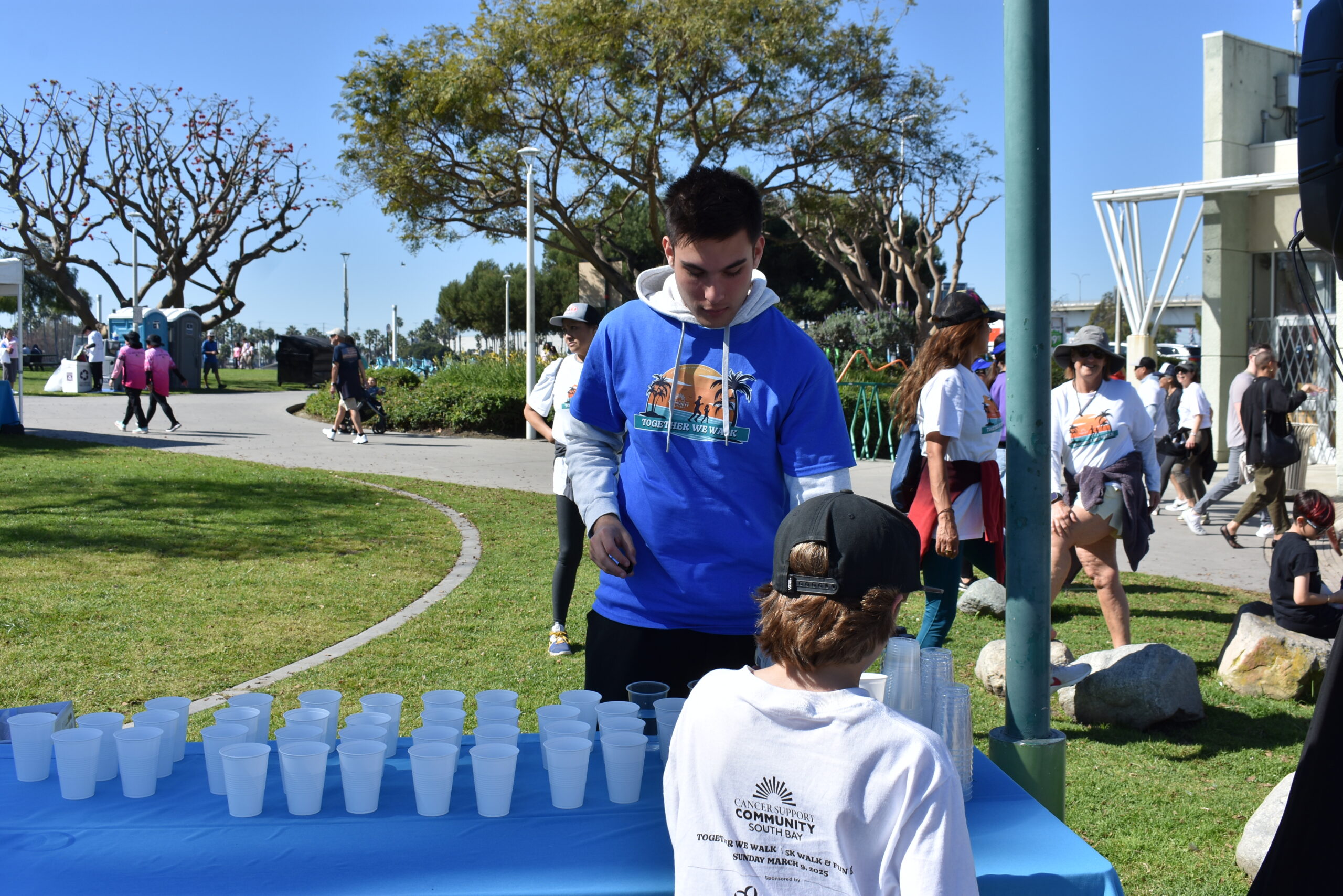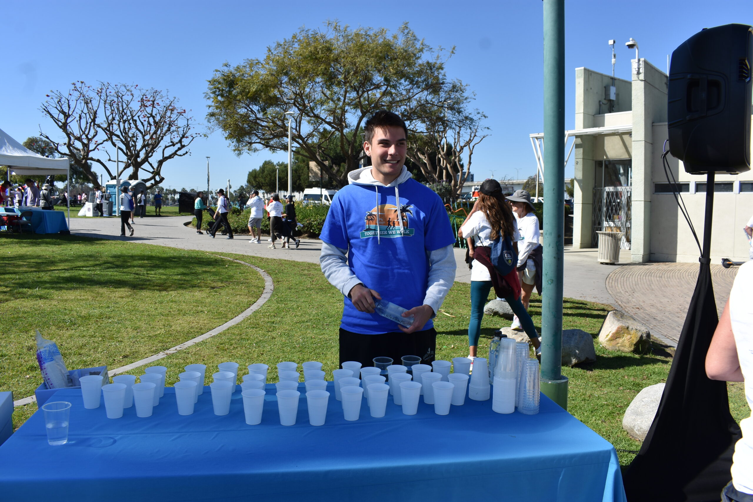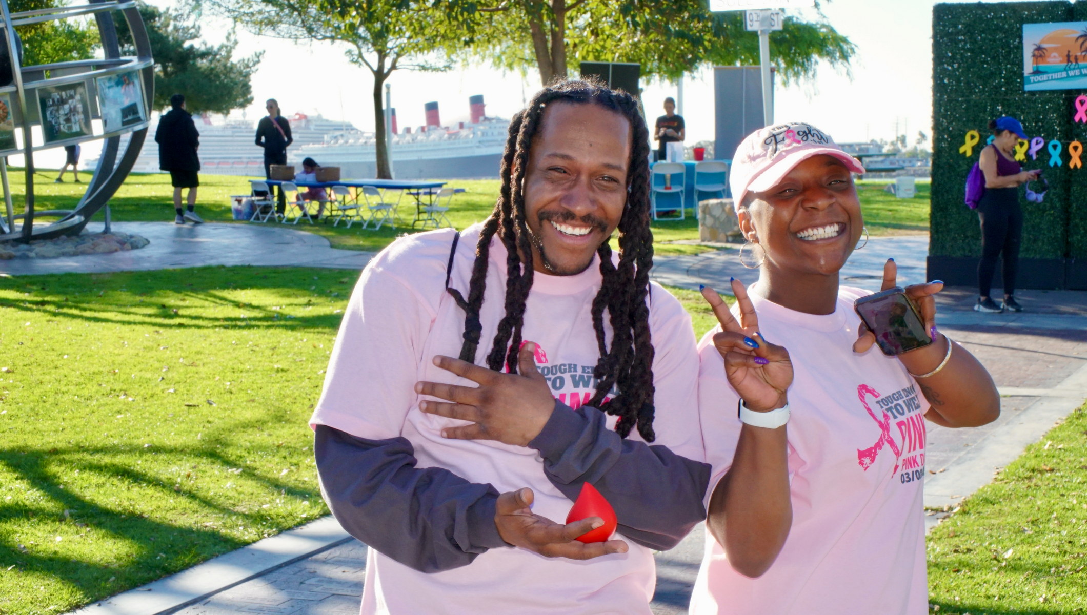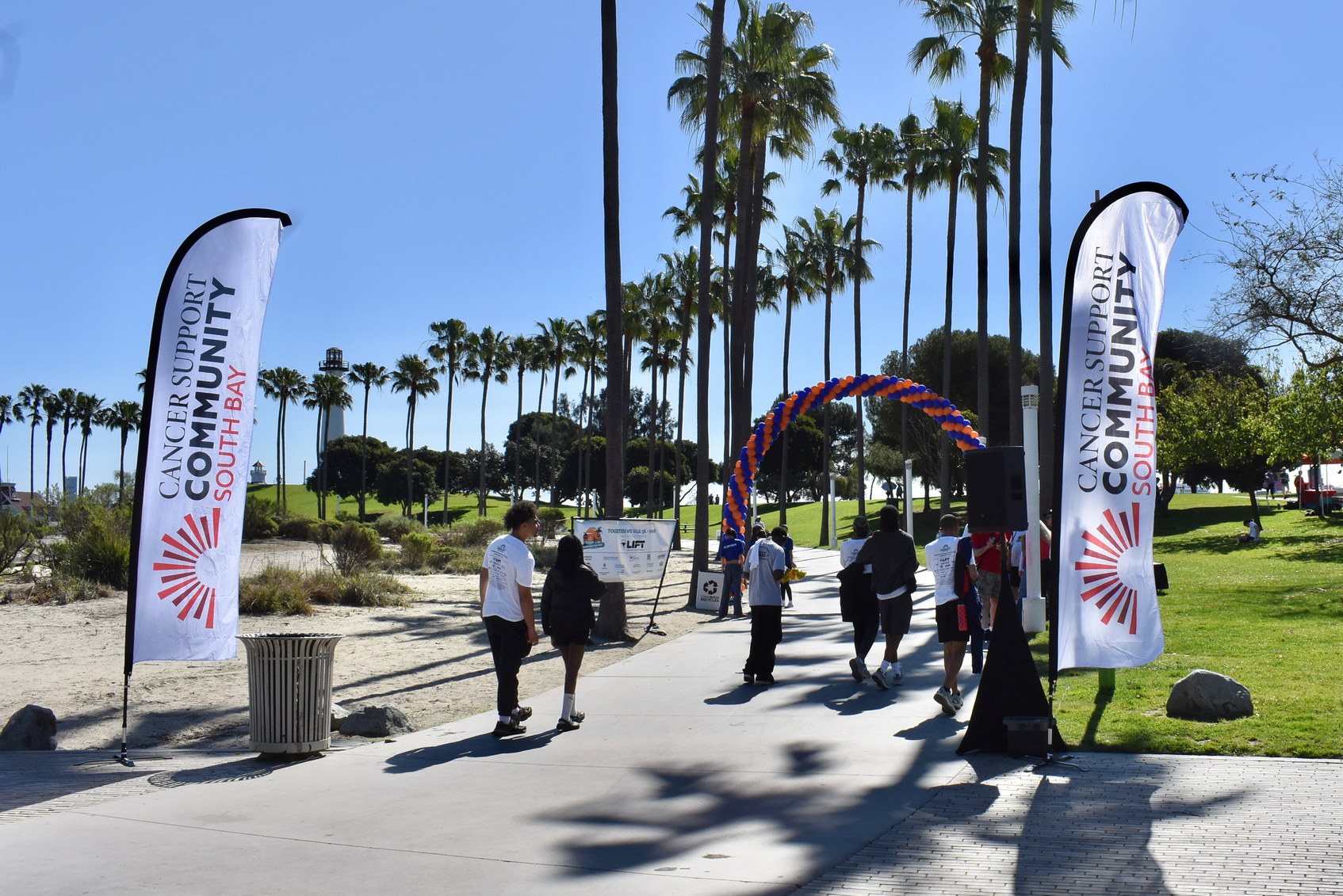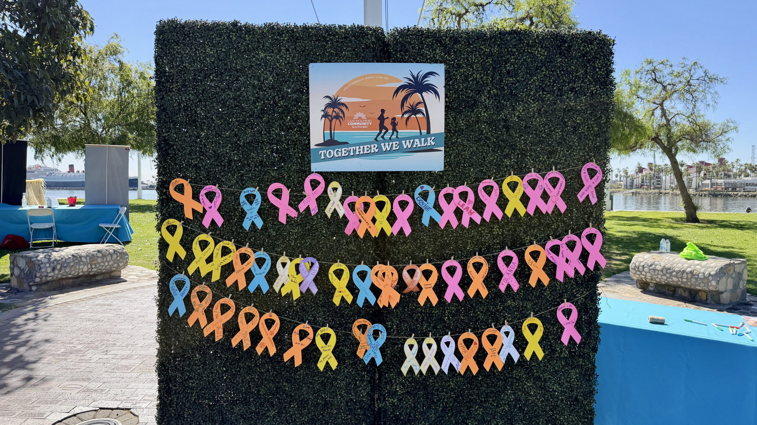 Together We Walk starts at Shoreline Aquatic Park near the parking lot. The 5K walk weaves its way through Long Beach passing the Aquarium, Sea Shell Park, Gladstone’s Restaurant, Shoreline Village, Parkers’ Lighthouse, Queen Mary, and the harbor. The walk ends back at the Aquatic Park where we started.